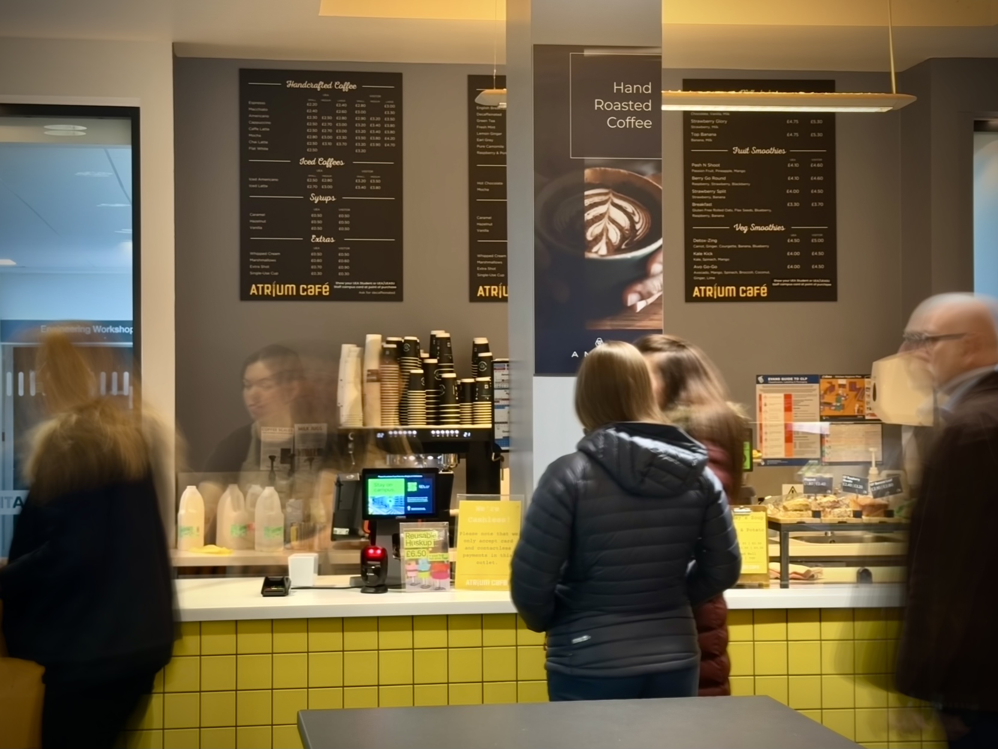 Blend is the perfect stop to keep you fueled throughout the term. From filled rolls and comforting homemade soup to indulgent mac 'n' cheese and crispy popcorn chicken, there’s something for every craving. Whether you’re after a quick snack, a cheeky chocolate bar, or a freshly brewed bean-to-cup coffee, Blend has you covered. Enjoy your meal indoors or take it to go, making it easy to enjoy wherever you are on campus. Convenient, tasty, and satisfying, it’s the ideal spot for students and staff on the move.